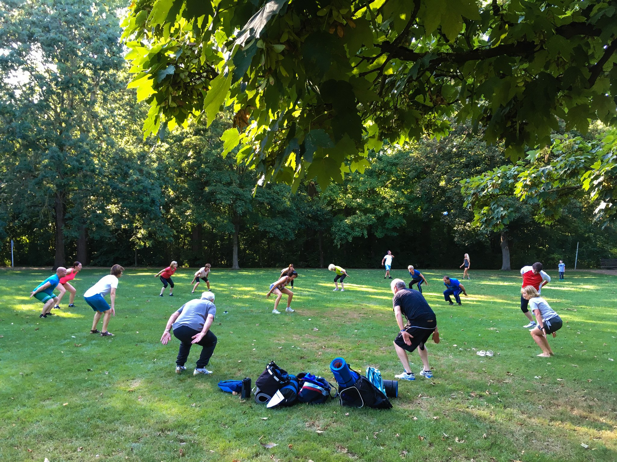 Das Sommertraining findet in Zusammenarbeit mit dem Stadtsportbund Mönchengladbach im Rahmen der Aktion Sport im Park statt. Und so ließ es sich der Stadtsporbund in Person von Herrn Kauertz nicht nehmen unsere Veranstaltung zusammen mit zwei Vertretern der Rheinischen Post auch persönlich zu besuchen. Insgesamt hatten wir 20 Teilnehmer, davon 5 Externe. Das ist also noch ausbaufähig.