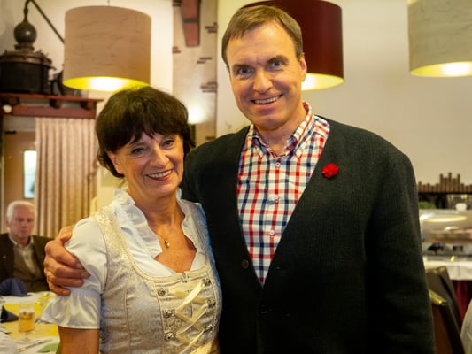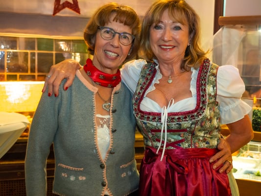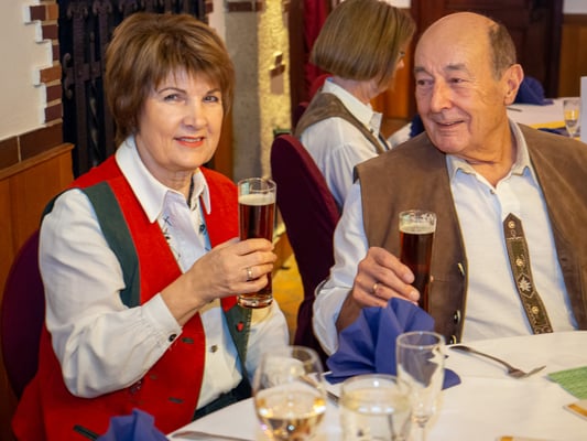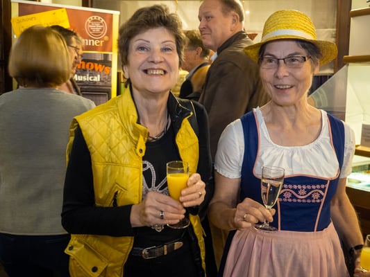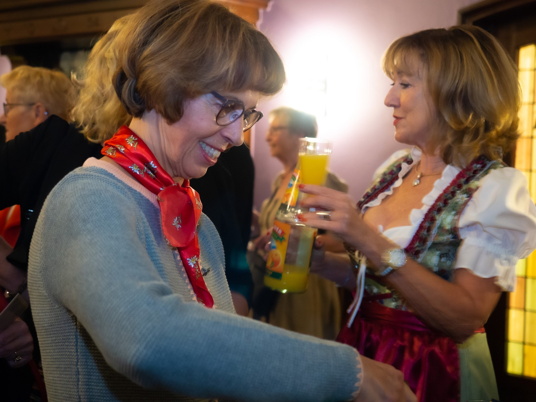Und so hatten Anne, Olga, Hanne und Marlies schon gut zu tun, die Rotkäppchen zu entkorken und die Gläser der ankommenden Gäste zum Begrüßungsschluck zu füllen. Hans im zünftigen Outfitt machte den Türsteher, der Einlass den Besuchern gewährte und auch die übrigen Vorstandsmitglieder standen ihm bei.