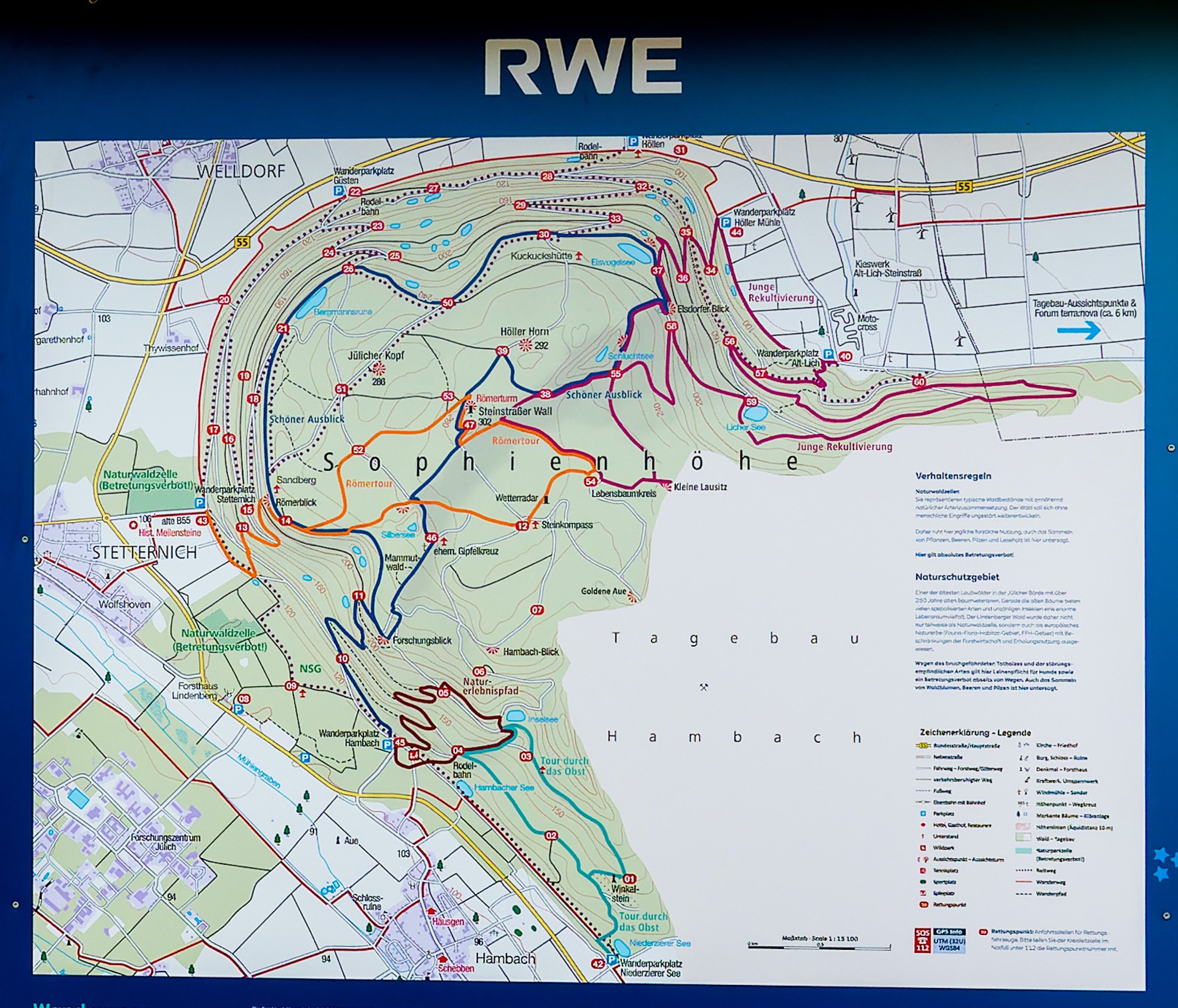 Unser Parkplatz "Grillhütte" hatten am Ende alle gefunden. Aber versteckt lag er schon am Fuße der Sophienhöhe. Diese Abraumhalde vom Tagebau Hambach ist etwas über 200 Meter hoch, bewaldet und von zahlreichen Wanderwegen durchzogen.