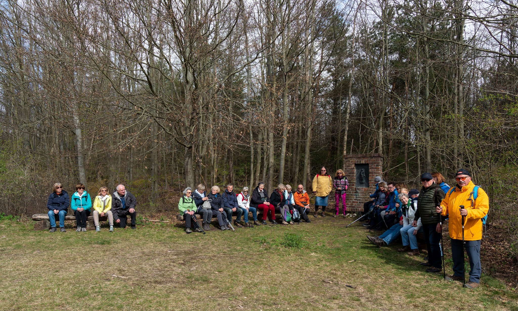 Und endlich gab es auch die Stelle für das Gruppenbild unserer doch immerhin 28 Wanderer. Am Denkmal zur Sophienhöhe bot es sich einfach an.