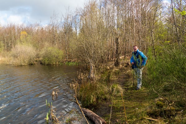 Ein erster Halt war am sog. Eisvogelsee für ein Gruppenbild geplant. Der See war schön anzuschauen, aber Platz für das Gruppenbild war da nun wirklich nicht. Am Seeufer dann kein Eisvogel, sondern Toni, der für uns die heutige Tour ausgearbeitet hatte und schon einmal vorgewandert war.