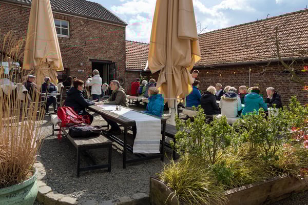 Von hieran ging es bergab zu unserem Parkplatz und danach Weiterfahrt zum Klosterhof Hohenbusch. Hier kehrten wir bei Flammkuchen für die Einen und Kaffee und Kuchen für die Anderen ein und ließen den Wandertag gemütlich ausklingen.