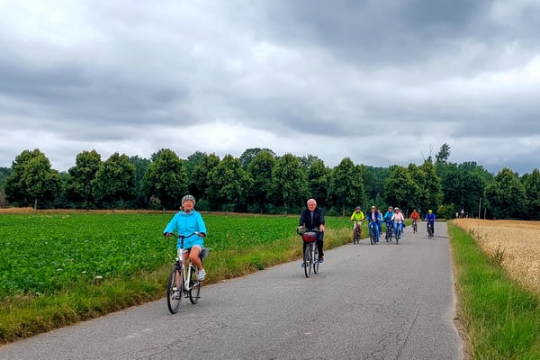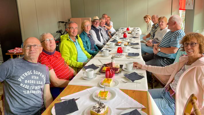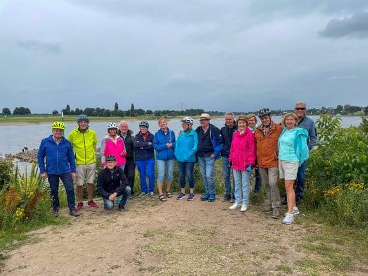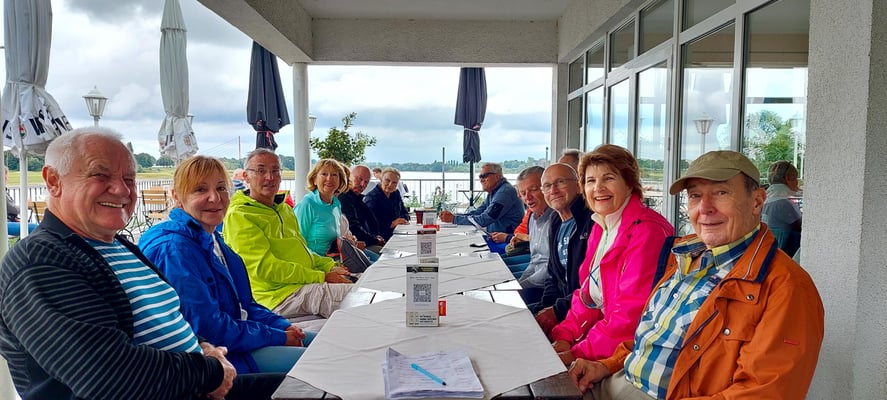 Um 10:00 Uhr ging es mit 15 Teilnehmern Richtung Nikolauskloster los. Vorbei am ehemaligen Dyker Weinhaus ging es dann an der Museumsinsel Hombroich vorbei zur Erft und dieser immer entlang bis zu Mündung in den Rhein. Hier kehrten wir dann ein und die Gruppe vergrößerte sich noch um 2 Besucher. Nach der gemütlichen Pause im "Restaurant am Rhein" ging es dann wieder zurück, nicht ohne noch eine schöne Rast mit Kaffee und Kuchen im "himmlischen Café" in Glehn einzulegen. um 17:30 waren dann aller wieder zurück.