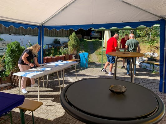 Kein Preis ohne Fleiß. Vor dem alljährlichen Fest ist eine Menge zu tun, denn der Auf- und Abbau von all dem, was für einen gelungenen Frühschoppen erforderlich ist, ist doch mit viel mehr Arbeit verbunden als man glaubt. Wie bei jedem unserer Frühschoppen waren aber bereits um 9:00 Uhr zahlreiche Helfer zur Stelle, die mit Hand anlegten und auch im Verlauf der Veranstaltung ihre Unterstützung weiterführten. Vielen Dank hierfür.