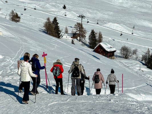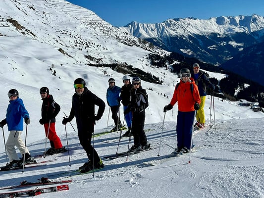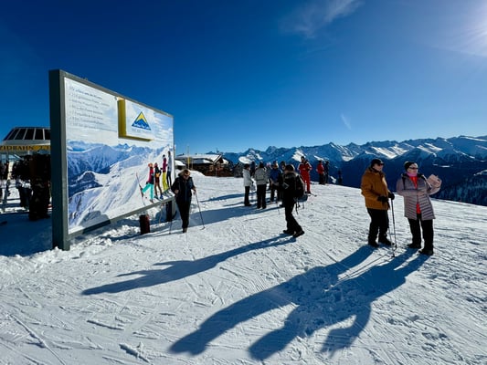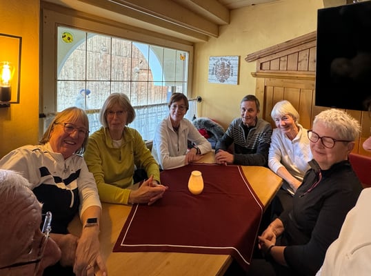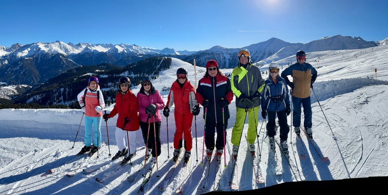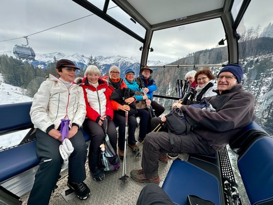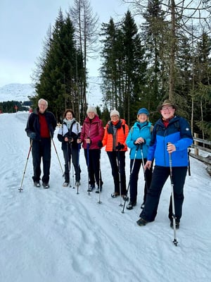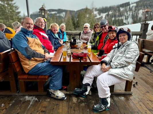 Bei der großen Anzahl der Skiläufer bildeten sich vier Gruppen. Die Skibetreuung übernahmen Herbert und Marcus, andere schlossen sich Dieter und Martina an. Verstärkt wurden die Skiläufer noch durch Eckart und Andrea sowie Erich und Dagmar, die das Hotel privat gebucht hatten, da unsere Plätze schon alle vergeben waren. - Leider waren zwei Damen vom Pech verfolgt und nahmen einen Kreuzbandriss bzw. einen Wadenbeinbruch mit nach Hause. Gute Besserung den Beiden.