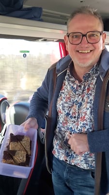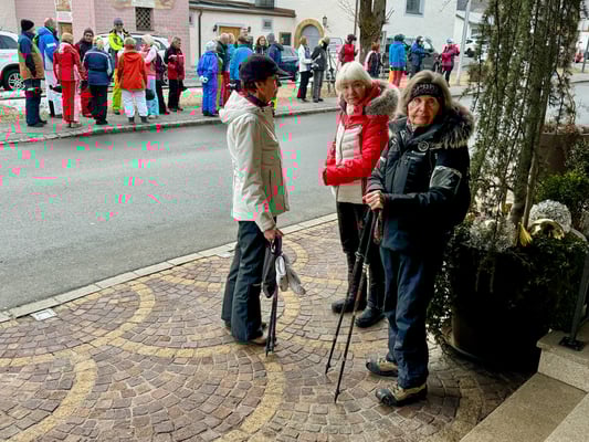 Um Punkt 6 Uhr fuhren wir vom Überlandbusbahnhof in Mönchengladbach los. Von den insgesamt 49 angemeldeten Ski-Club Mitgliedern hatten sich 10 für die Anreise mit dem eigenen PKW entschieden und da 2 weitere Mitglieder wegen kurzfristiger Erkrankung ausfielen, waren es dann schließlich nur 37 Personen im Bus. Also genügend Platz für alle. - Mit Ausnahme einiger Stauungen verlief die Fahrt zügig und wir erreichten gegen 17 Uhr unser Hotel. Reiners Geburtstag wurde mit leckeren Nussecken gefeiert (auf der Rückfahrt hatte dann unser Hubert seinen Geburtstag). Die einzige schwache Leistung war an Ulrikes Schnapsbar, da einige "Stammkunden" nicht mit im Bus waren :-)
