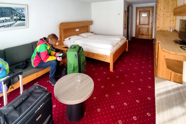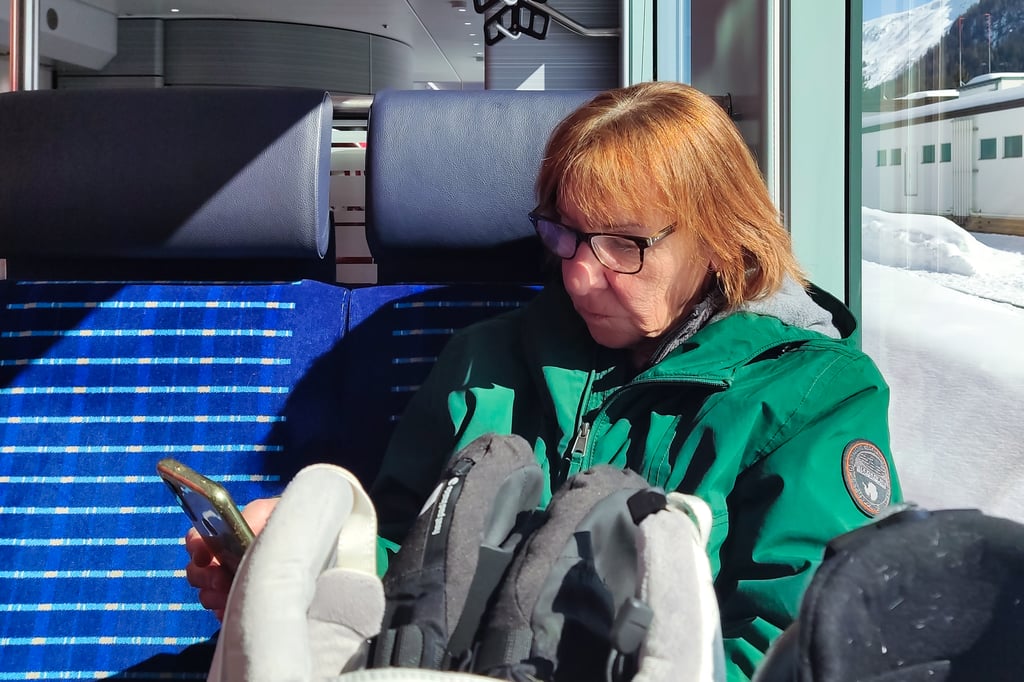 Nach einer stressfreien Nachtfahrt im „Relax-Sessel“ erreichten wir die schneebedeckte und höchste Stadt Europas (1.560 m) im vollbesetzten Doppeldeckerbus mit 58 Personen. Das Gepäck wurde in der „Frosch-Bar“ ( Ebene -3 ) abgestellt und es ging zum Extra Frühstück, das im Hotel für die neuen Gäste bereitstand. Hiernach bekamen wir unsere Zimmernummer (125) und sollten uns in einem Wochenmenüplan (vegetarisch oder normal) eintragen. Die Zimmer konnten erst ab 16 Uhr bezogen werden. Unser Zimmer war sehr groß, hell, hatte einen Balkon, sehr viel Stauraum und ein modernes Bad. Das 3* MOUNTAIN Hotel, das als Sport-Clubhotel betrieben wird, hat ca. 180 Betten, 2 Saunen und ein kleines Schwimmbad (kaum benutzt). Frosch-Reisen belegte ca. 60% der Zimmer, die anderen Zimmer wurden von anderen Gruppen und Einzelpersonen (oft nur 2 bis 3 Nächte) belegt. - Da unser Skipass erst ab dem nächsten Tag galt, war bei schönem Wetter eine Wanderung zur Schatzalp angesagt. Hier benutzten wir den „Thomas Man Weg“ (Der Zauberberg, Nobelpreis) zur Schatzalp. Das ehemalige Sanatorium für Tuberkulose-Patienten im Jugendstilbau spielte in der 6-teiligen Serie „DAVOS 1917“ im Dezember 2023 im ARD eine große Rolle und ist in der ARD Mediathek noch bis zum 20.06.2024 verfügbar.