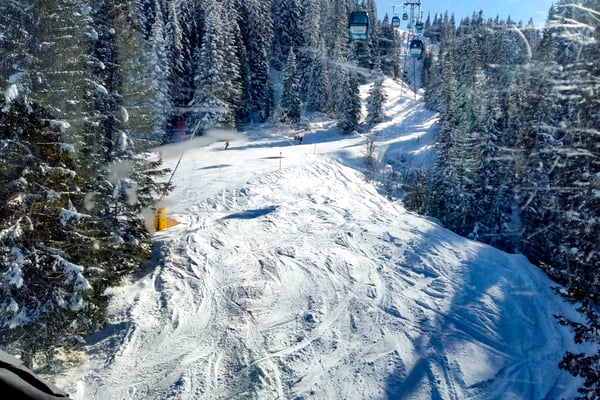 Von den fünf Skigebieten war bei schönem Wetter zuerst das Skigebiet Parsenn mit Klosters angesagt. Wir waren erstaunt über die leeren Pisten, besonders die Talabfahrt Richtung Klosters (1.191 m), die trotz Kunstschnees schlecht zu befahren war.