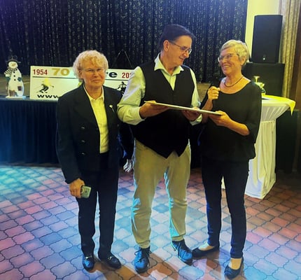 Hervorzuheben ist das persönliche Jubiläum von Marlies Flug im Ski-Club, denn sie war von ihrer Mutter schon bei der Vereinsgründung angemeldet worden. Aus den ersten Jahren berichtete sie über die damaligen Skibedingungen, die aus heutiger Sicht gar nicht mehr vorstellbar sind. Meinolf appellierte eindringlich an die Feiergesellschaft, weiterhin im und für den Verein aktiv zu sein und von den Sportangeboten Gebrauch zu machen.