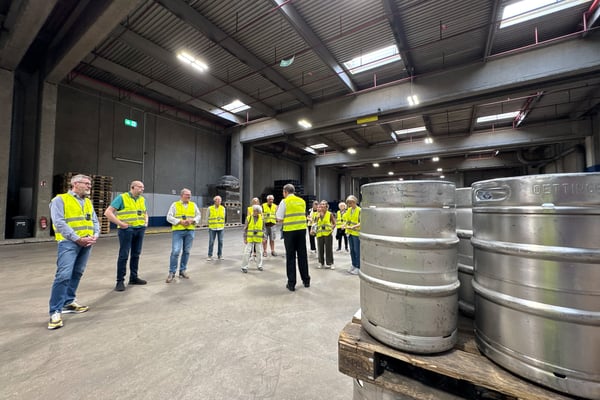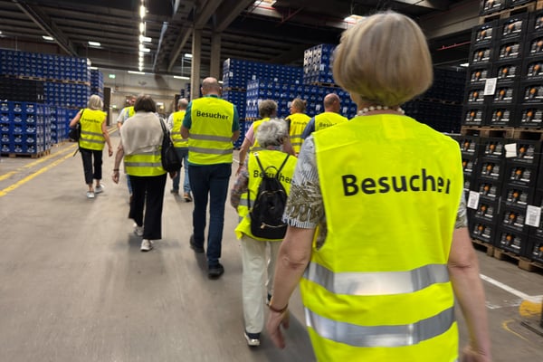 Das Firmengelände hat eine wirklich beeindruckende Größe. Regelmäßig lagern um 1,5 Millionen leere Bierkästen dort und warten auf ihre Befüllung. Der Abtransport erfolgt über firmeneigene LKWs mit eigenem Personal, das gegenüber den Berufskraftfahrern im für sie günstigeren Tarif der Bierbrauer vergütet wird.