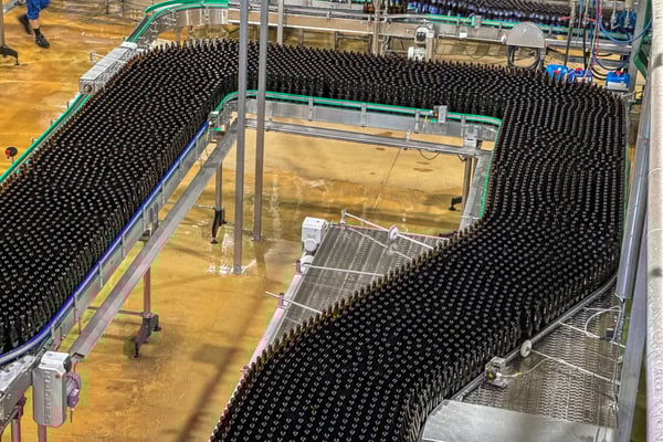 Weiter ging es in die Abfüllstationen. Und jetzt durfte gestaunt werden. Welche Mengen an Flaschen und Büchsen dort in kürzester Zeit gefüllt und gekorkt wurden sprengt die Vorstellungskraft, wenn man es noch nicht gesehen hat. Zuvor liefen die Flaschen automatische Reinigungsprozesse durch, fehlerhafte wurden automatisch ausgesondert. Die Kästen wurden ebenfalls gewaschen und rollten frisch geduscht auf ihren Einsatz zu.