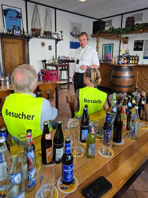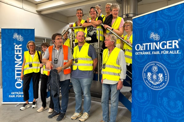 Nach so vielen Informationen und optischen Eindrücken gab es zum Abschluss noch einen Film über die Oettinger Brauerei und einen Gang in die kleine Schulungsbrauerei im Hause. Und dort gab es eine köstliche Erfrischung, direkt aus dem Stahlfass, mit und ohne Alkohol. Herrlich.