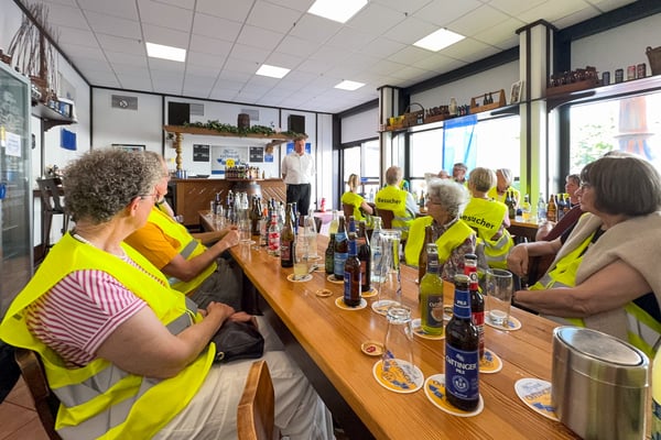 Aber Schluss der Veranstaltung war damit keineswegs. Es ging noch einmal in den Besucherraum zu einem letzten Umtrunk und einem Dank an Meinolf, der jetzt von seiner Frau Martina unterstützt wurde und auch an Toni für die Verabredung dieser Veranstaltung. Und nachdem alle Besucher noch mit einer Wegzehrung ausgestattet wurden, ging es dann wieder heim. Wir haben eine Menge gesehen.