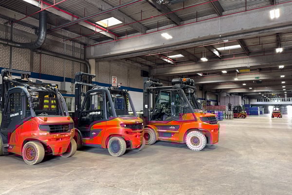So ein großer Laster geht ganz schön in die Knie, wenn der Gabelstabelfahrer eine Palette in ihm absetzt. Das ist Präzisionsarbeit, die ganz schön Erfahrung benötigt, denn auf den letzten Metern sieht der Fahrer fast nichts mehr. - Übrigens, ab drei Paletten wird jeder beliefert. Aber das ist schon eine ganze Menge, also nichts für den kleinen Durst.