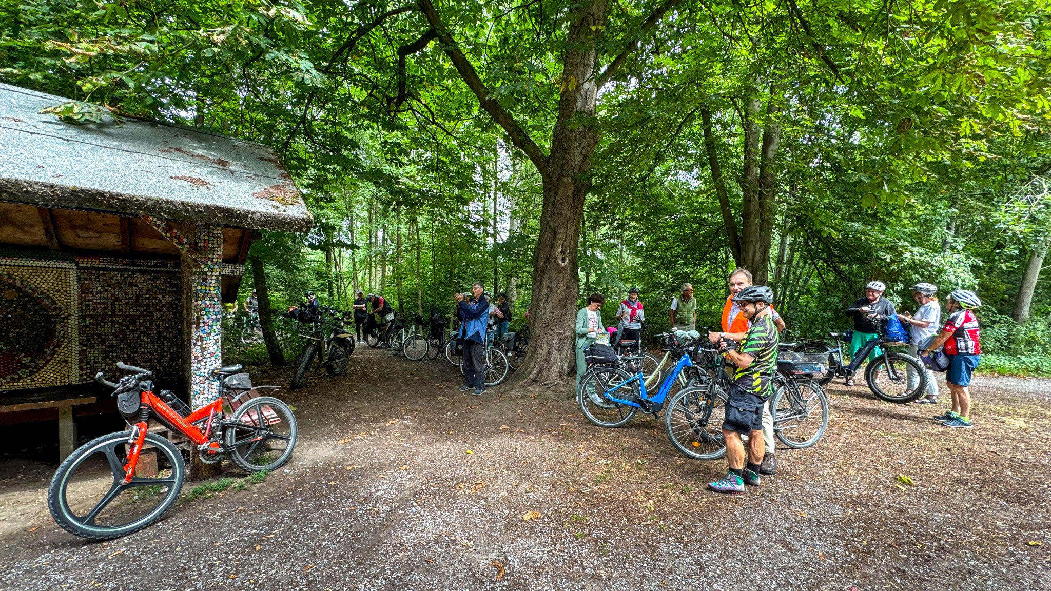 Von dort ging es den Jüchener Bach entlang nach Bedburdyck und weiter über die Felder nach Noithausen und Orken um dann am Ufer der Erft zu einer zweiten Rast den Waldtempel zu erreichen.