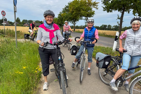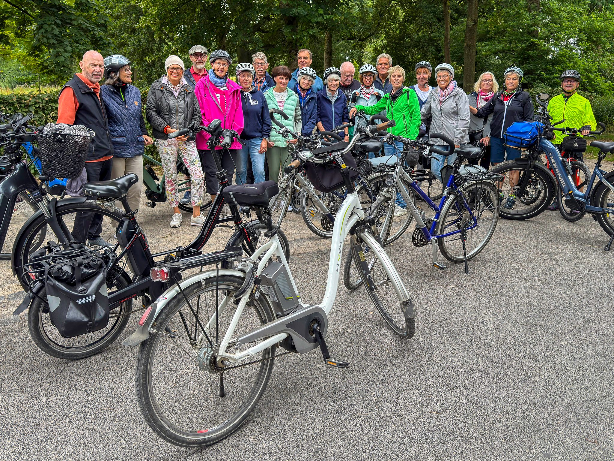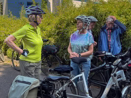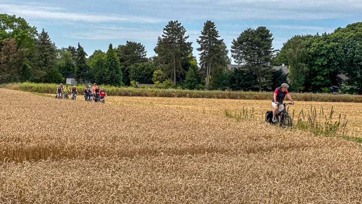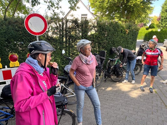 Bei bestem Fahrradwetter starteten wir mit 20 Ski-Clublern und kehrten mit 22 zurück. - Pünktlich um 10 Uhr ging es los. Von Schloss Rheydt die Niers entlang über Giesenkirchen, Schlich und Wallrath. Danach erreichten wir in Aldenhoven unsere erste Rast zu einer Trinkpause.