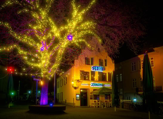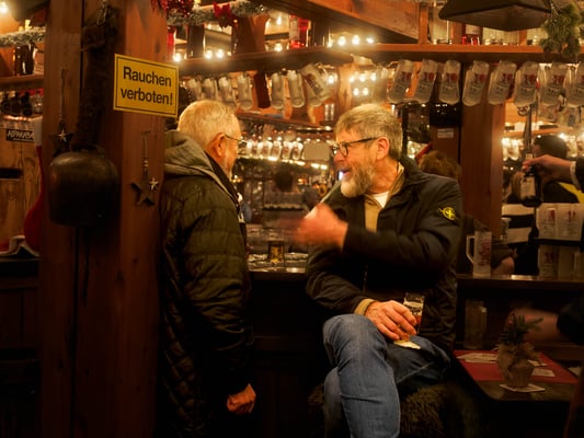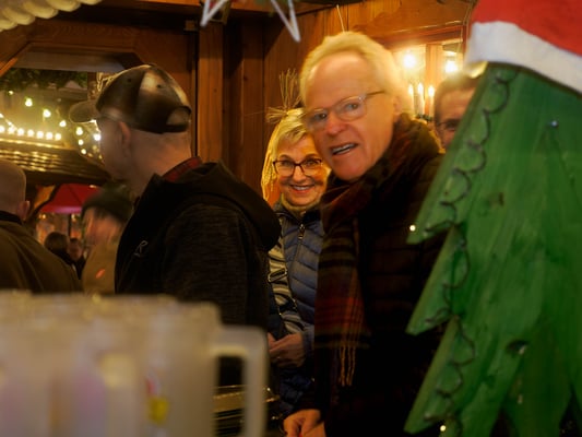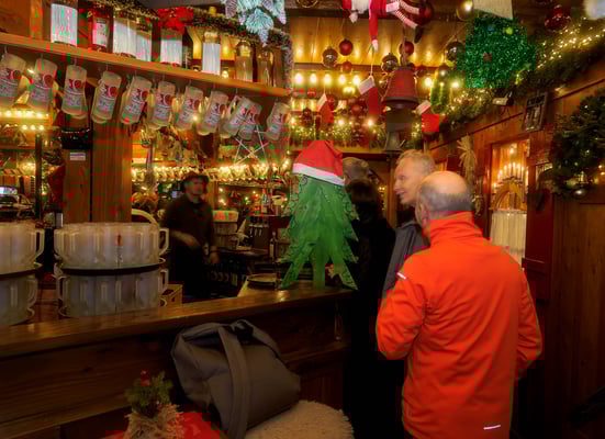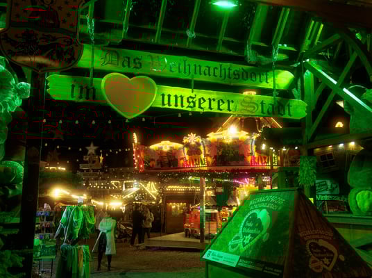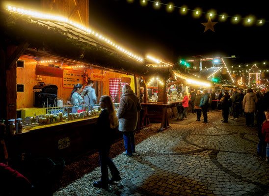Der Weihnachtsmarkt glüht warm im