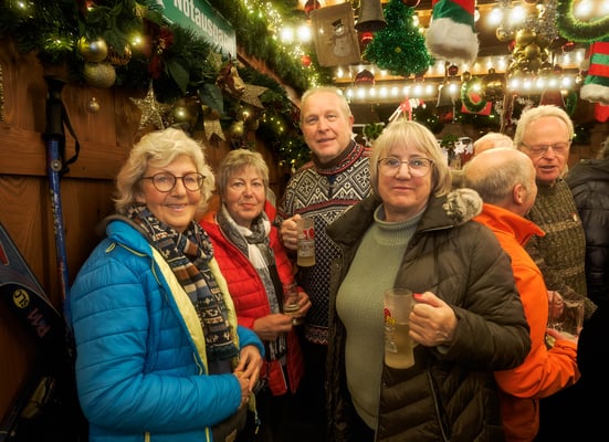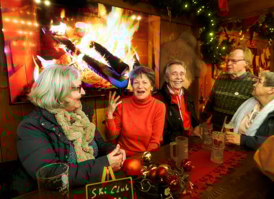 auf sehr gesellige Ski-Club-Weise.